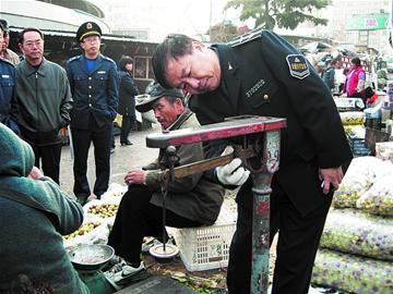 ????市質監局副局長高善武告訴記者,目前市區60多家農貿市場中,共有各種計量器具上萬臺。今年以來,質監部門已經查獲了30多臺鬼秤。針對一些市場商販流動性大,秤具檢定還有漏洞的情況下,在今年雙節前,質監局還將繼續啟動農貿市場、商場超市計量器具集中整治,重點檢查集貿市場衡器是否檢定,是否使用合格器具,公平秤是否配備完備;是否在有效期內;有主辦者的市場在用衡器的管理是否到位等。