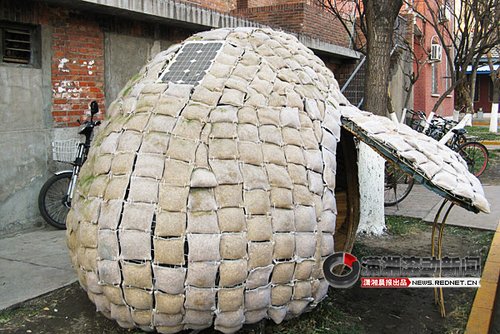 ????趙貴海(化名)在北京一家投資公司任職,看到“蛋屋”新聞后,立即趕來(lái)實(shí)地考察。他說(shuō),“蛋屋”點(diǎn)燃了自己埋藏心底多年的夢(mèng)想。“那時(shí),我想用稻草造房子,稻草是壓縮過(guò)的,不漏水不透風(fēng),比這個(gè)更保暖,遺憾的是,計(jì)劃沒(méi)有付諸實(shí)施。”他說(shuō),很想與戴海飛談合作推行“稻草屋”的計(jì)劃。然而,他在樓下等了很久,戴海飛始終躲在辦公室沒(méi)有露面。