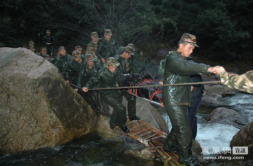 ????2010年12月13日凌晨2點37分,在安徽黃山景區因迷路被困的18名上海驢友在黃山景區一個未開發開放區域被當地搜救人員找到,不幸的是,50分鐘后,23歲的黃山風景區公安局民警張寧海在護送途中不幸墜崖身亡。圖為武警官兵護送張寧海的遺體。