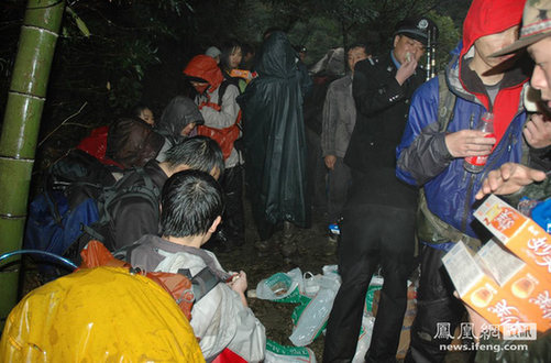 ????12日下午,這18名大學生被困在黃山云谷寺風景區峽谷,上海與安徽兩地公安部門迅速聯動,立刻展開救援行動,黃山市派出由公安、消防、綜治、防火等部門組成的230多人的救援隊伍。圖為獲救的大學生驢友前來送行。