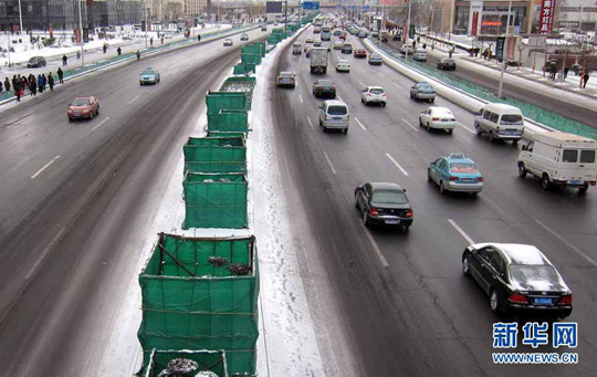 12月23日,車輛在濕滑的路面上行駛。當天,天津迎來今年入冬以來一次明顯降雪,大部分地區出現小雪,最大降雪量為1.7毫米。截至上午9時,途經天津的12條高速公路,除津濱高速在警車引導下保持開放外,其他11條高速公路關閉。岳月偉攝