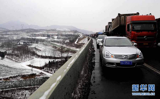 12月24日,國道連霍高速公路三門峽段由于降雪造成交通擁堵。當日,位于豫西山區的三門峽地區普降小到中雪,這是入冬以來這一地區的首次降雪,對緩解當地旱情起到積極作用。朱祥攝