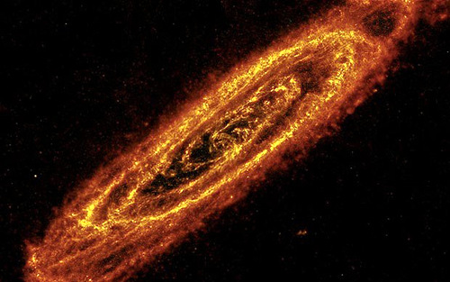 ????這個圖景在地球上是不可能看到的,因為在太空中發射的X射線與紅外線都被地球大氣層吸收了。但當深夜最遠星球可用肉眼觀測時,人們是可以在正常光線下看到仙女座星系的。