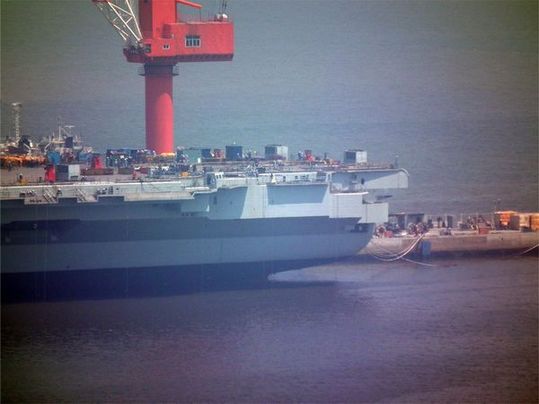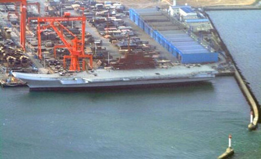 資料圖:在中國大連港進(jìn)行整修的瓦良格號航母。