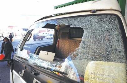 ????“撫順路批發(fā)市場附近,一輛廂式貨車撞傷一名過馬路的男子,男子倒地后頭部大量流血,還嘔吐不止。”昨日市民蘇先生撥打早報熱線82888000稱,廂式貨車前擋風(fēng)玻璃被男子一頭撞碎了,男子傷勢十分嚴重。記者驅(qū)車沿鞍山路西向東行駛,距離現(xiàn)場還有一個路口的距離時,一輛120載著傷者鳴笛呼嘯而過。