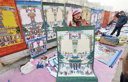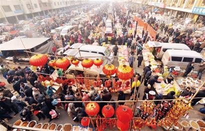 ????好不容易擠進李村大集,七八百米長的李村河底一眼望去到處是黑壓壓的趕集市民,許多買到年貨的市民和送貨的商販只得把物品高高舉過頭頂,在人群中擠來擠去。炕頭上的短腿小桌、拂灰塵的雞毛撣子、草編的老式鍋蓋、火紅的對子、兔年的餑餑磕子……平時很少能見到的民俗年貨堆滿集市攤位。祖孫四代經營家傳喜蠟的黑大成告訴記者,為避開人流高峰,他凌晨5點就從家出門,將整箱的喜蠟早早搬到河底擺下攤位。“我家已在李村集上賣了100多年的喜蠟。”30多歲的黑大成告訴記者,早些年的李村集都是清晨五六點鐘趕集,中午前后集市就開始散了,而現在的李村集延長為全天集市,攤位也比以前規范了許多。