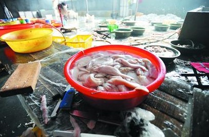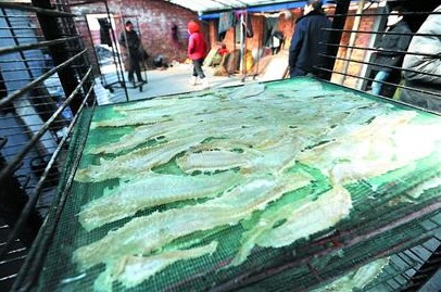 近日,市民王先生撥打本報熱線82860085反映,在即墨市郊移康路上,有一家加工烤魚的黑窩點,里面衛生狀況骯臟不堪,還用對人體有害的雙氧水浸泡烤魚。為了揭開其中的黑幕,本報記者前往該黑窩點暗訪,里面的衛生之臟亂讓人心憂。 小作坊安裝攝像頭 昨日上午,記者來到位于即墨市郊移康路上的這家烤魚加工廠。記者看到,該工廠四周由一人多高的磚墻圍起來,整個廠房有4排房屋面積達上千平方米。記者以采購人員的名義進入廠房。“老板在家么?”記者敲門5分鐘后,一名中年婦女過來開門,“什么事?”“我們是他的客戶,過來買點烤魚給職工發福利。 ”聽到生意上門,中年婦女將記者引入院內。剛進入大院,記者就看見最后一排房屋墻壁上裝著一個攝像頭,正對著大門。 臭魚遍地惡臭撲鼻 “你這個魚怎么賣,要是便宜我多要點。”“22塊錢一斤,進貨得和老板談。 ”女子接著給老板打了個電話,稱有生意上門讓其抓緊回來。 記者趁同事支開那名婦女時,悄悄進入了魚片加工車間,只見近百平方米的水泥地上擺放著20多個塑料大盆,十幾名女工在用剪刀把魚豁開,地上到處是丟棄的魚皮和內臟,一股惡臭撲鼻而來,頂得記者干嘔起來。記者注意到,車間西側有一個1米多寬、3米多長的大水池子,里面漂著發臭的死魚,靠近南側進門的地方則堆放著半米多高、3米多長的一堆死魚。 警惕老板驅趕記者 過了5分鐘左右,一名40歲左右的男子走了進來,他自稱姓呂是廠房的老板。 “你們怎么知道這個廠的? ”記者稱有朋友從這里買過烤魚,自己是多方打聽才找到的,“如果價格便宜,我可以買50箱。 ”但這名男子并不上鉤,看到記者同事從車間內走出,這名男子突然臉色大變,“我這里不賣烤魚,只幫忙給別的廠子加工,你要買找他們去吧! ”隨后,老板連推帶搡把記者“送”出了大門。記者剛走出院子,廠房大門突然敞開,十幾名女工陸續跑出,沿著馬路往村內走去。 |