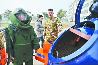 “因為穿這套防爆服要花費近10分鐘,所以,一旦接到排除可疑爆炸物之類的緊急任務后,我們會在趕赴現場途中先穿好。”付祥雨說。