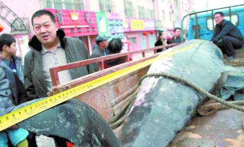 ????“我們社區(qū)南側(cè)的灘涂養(yǎng)殖區(qū)海水并不深,怪魚怎么會(huì)闖進(jìn)來呢?”居民吳先生介紹說,該社區(qū)居民常年在這片灘涂上進(jìn)行貝類海產(chǎn)品養(yǎng)殖,而且漲潮時(shí)海水也只有2米左右深,退潮時(shí)海灘就會(huì)全部暴露出來,而且膠州灣內(nèi)靠近他們養(yǎng)殖區(qū)的位置很少有大魚出現(xiàn),他們懷疑,這條“怪魚”是隨著潮水進(jìn)入了這片灘涂,但在退潮時(shí)“怪魚”沒有及時(shí)隨著潮水離去,便擱淺在了灘涂上,他們經(jīng)過對“怪魚”的身體進(jìn)行檢查,并沒有發(fā)現(xiàn)任何外傷,只是肚皮處有輕微的劃傷痕跡。他們認(rèn)為 ,“怪魚”很可能是擱淺在灘涂上時(shí)間過長,然后窒息死亡。