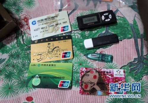這是公安機關繳獲的犯罪分子使用的銀行卡(1月29日攝)。