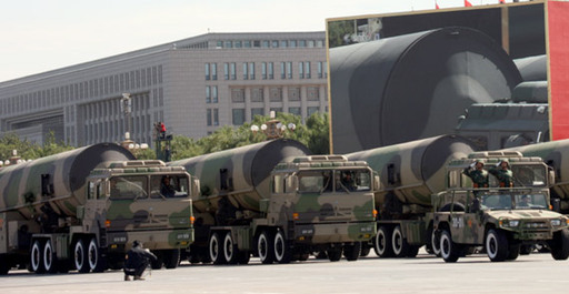 資料圖:參加國(guó)慶閱兵的解放軍二炮東風(fēng)-31A核導(dǎo)彈方隊(duì)。