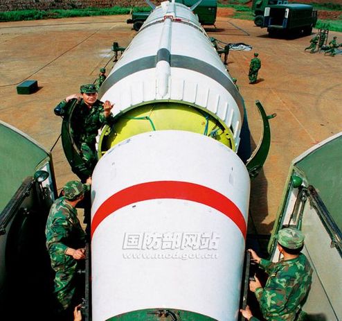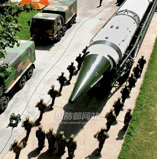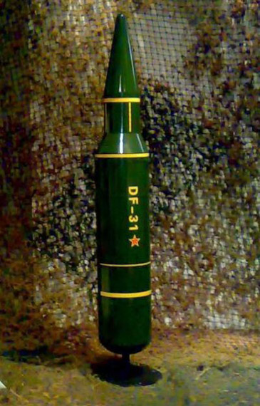 資料圖:2007年公開的“東風-31”洲際彈道導彈模型。