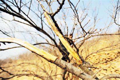 孫信功說,更讓他頭疼的是由于持續干旱,該區域河道、湖泊和井水等基本干涸,根本無法滿足大面積農作物灌溉。目前主要依靠街道的水庫之前的蓄水,但如持續干旱,水庫蓄水也將告罄。山色峪櫻桃谷生產櫻桃,是村民主要收入來源。看著滿山遍野 “喊渴”的櫻桃樹,孫信功幾乎愁白了頭。“如果往年,現在早就出芽了,漫山遍野都是香味,現在你看看,很多櫻桃樹都蔫了,樹都干死了用手一掰就斷了。 ”“現在減產已成定局,我最擔心的是絕收。 ”孫信功說,如果干旱天氣再持續一個月,該區域上萬畝的櫻桃樹將“渴死”。目前街道已組織打井隊到櫻桃樹周邊,對枯井進行清理挖深,取得了一定效果。記者 李德銀