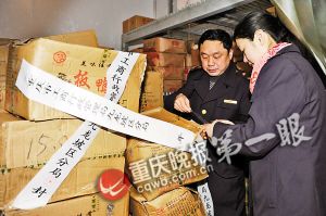 執法人員正在查封過期板鴨