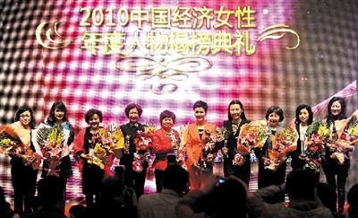 昨天,2010年中國經濟女性年度人物揭榜典禮在京舉行。圖為女性年度人物集體合影。 本報記者 王苡萱 攝