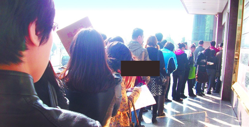 ???市房地產交易中心還未開門,申請購房證明的人已排起了長龍。?