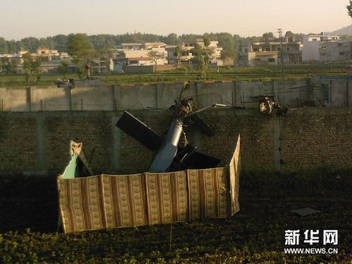 這是5月2日在巴基斯坦阿伯塔巴德拍攝的一架墜毀直升機(jī)的殘骸。新華社發(fā)(卡馬爾攝)