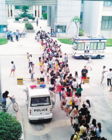 對此,陜西省教育廳、省招辦明確表示,西安外國語大學違反了教育部和省招辦關于高考“嚴禁選聘本科生參加評卷”的規定,嚴重違規,必須立即整改并對相關責任人進行嚴肅處理。記者今天也在西安外國語大學評卷現場看到,戒備嚴密的閱卷地點更顯森嚴,用黃色隔離帶圈起來的警戒范圍也比之前擴大了許多。