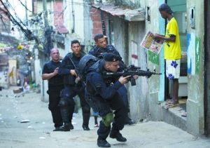 6月19日,巴西政府出動數百軍警,駕駛著直升機和裝甲車,直奔里約熱內盧市內的曼蓋拉貧民窟,打擊當地氣焰囂張的販毒和暴力團伙。