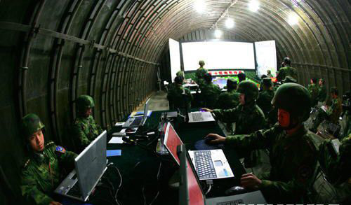 資料圖:解放軍已經(jīng)建成第一個(gè)網(wǎng)絡(luò)戰(zhàn)基地,這是其在信息化戰(zhàn)爭(zhēng)時(shí)代加強(qiáng)軍隊(duì)數(shù)字安全努力的一部分。官方稱之為信息保障基地。圖為解放軍聯(lián)合演習(xí)導(dǎo)演指揮部。
