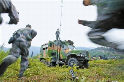 資料圖:總參通信部組織應(yīng)急通信保障演練,開(kāi)通網(wǎng)絡(luò)IP等多種通信模式。姚斌攝
