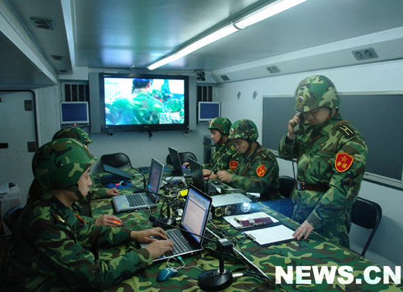 資料圖:解放軍演習(xí)采用先進(jìn)信息化指揮平臺(tái)。
