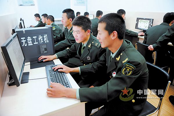 資料圖:官兵們通過(guò)“無(wú)盤工作站”上網(wǎng)。王征 攝