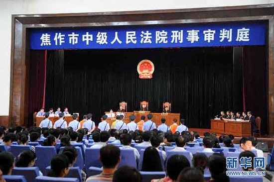 這是7月25日拍攝的焦作市中級人民法院庭審現(xiàn)場。新華社記者朱祥攝