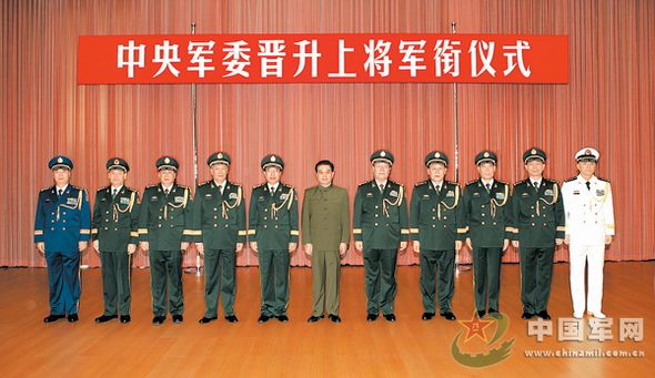 資料圖:2010年7月19日,中央軍委在北京八一大樓隆重舉行晉升上將軍銜儀式。