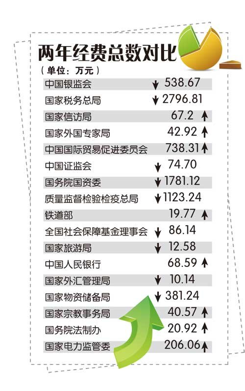教育部、中科院、中國社科院、國家自然科學基金委、國家行政學院、國家中醫藥管理局、國家新聞出版總署、新華通訊社、中華全國供銷合作總社、中國外文出版發行事業局、國家檔案局等11家部門選擇在了7月的第二個周五公布;緊接著,國家知識產權局、國家發改委、交通運輸部、農業部、監察部、衛生部等6個部門在第三個周五曬出賬本;上周五,又有中國銀監會、國家稅務總局、國家信訪局、國家外國專家局、中國國際貿易促進委員會、中國證券監督管理委、國務院國資委等7家部委集中公布。