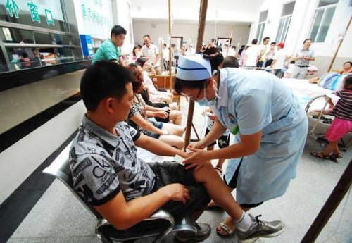 圖片說明:8月12日,因食用龍蝦出現不良反應的市民在瑞昌市中醫院接受治療。新華社發(胡國林 攝)