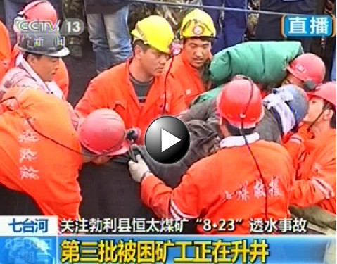 視頻截圖:實拍:被困超160小時 七臺河11名礦工獲救 來源:中央電視臺