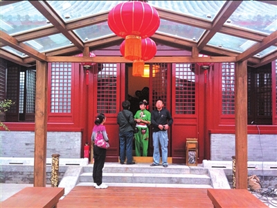 記者昨天探訪發現,這兩處未被核定為文保單位但早已列入文物普查名單的不可移動文物成為劉老根會館就餐包間,院內增加了罩棚,緊貼院墻外增設展示東北民俗泥塑的櫥窗。