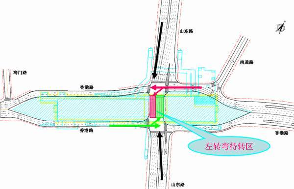 香港中路山東路原路口變更為左轉(zhuǎn)待轉(zhuǎn)區(qū)