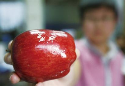 “吃這些表皮打蠟的水果,我一般都會削皮,但都說蘋果皮比較有營養,真是有點可惜。”不少市民在接受記者采訪時如是說。記者也隨機購買一個美國紅蛇果,用水果刀在表皮刮了幾下,就有白白的蠟質物脫落下來,而用水使勁清洗,表皮的蠟也并未洗去。