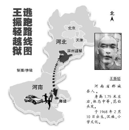 王振輕越獄逃跑路線圖