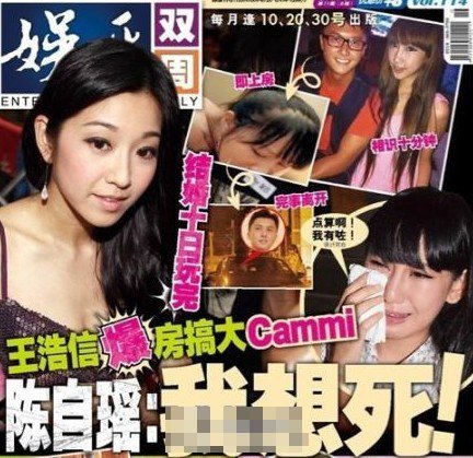 鳳凰網報道 近日某雜志稱陳自瑤的老公王浩信與謝芷蕙偷情,謝芷蕙已經懷孕兩個月的傳聞甚囂塵上。謝芷蕙近來先是爆出與陳冠希的親密照,后流出不雅照,如今再被爆出與陳自瑤老公有染,網友戲稱其為“集郵女殺手”。剛剛在11月11日與王浩信結婚的陳自瑤傳出這樣的消息,雜志封面用了“想死”這樣的字眼,陳自瑤是曾經學校的校花,因為一支廣告瞬間走紅,可謂紅極一時。另外,陳自瑤曾經與林峰拍攝電