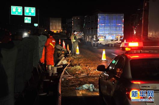 1月3日,路政工作人員在清理事故現場。新華社記者 白禹 攝