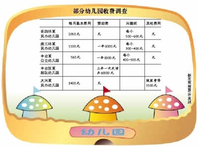 在上這家民辦幼兒園之前,張女士曾找了一所公辦幼兒園。雖然公辦園每月的學費只有四五百元,但總體對比了一下,還是決定上民辦幼兒園。“上公辦園也未必能省多少錢,但孩子享受的環境則大不相同?!睆埮恳菜懔怂愎k園的賬,“要交納1萬元的贊助費,另外還要至少2萬元的打點費?!睆埮空f,她家樓下鄰居的孩子就在一所公辦園入托,由于該幼兒園師資有限,老師對孩子照顧不是很周到。“我寧可多花點錢也得讓孩子有個好的環境?!?/p>