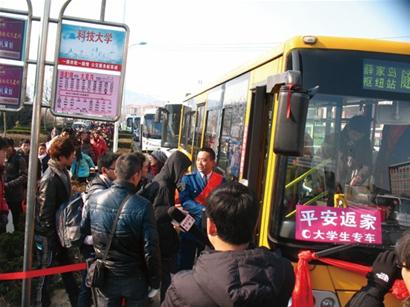 今天全國鐵路春運正式啟動,隨著島城各大高校學生陸續放假,紛紛踏上回家的旅程,昨天青島火車站出現春運首個學生流高峰。由于隧道1路線途經山科大、濱海學院、理工大學等4所高校,學生放假返鄉集中在7日到10日,預計節前返鄉人數在6-8萬人次。公交海底隧道路隊從昨天起開通 “平安返家學生專車”,隧道公交“專車”將學生一站送到火車站。據悉,昨天一天隧道1路運送學生旅客約1.7萬人次。 山科大門前排隊200米 昨日清晨5時40分,公交隧道1路首班車正點到達開發區山東科技大學門前,準備趕早班火車的大學生們早已提著行李等候在車站,在路隊工作人員的指揮下,學生們有序地排隊上車。 上午9時,記者在隧道1路始發站前看到,等待乘車的學生排起了長長的隊伍,一眼望不到頭,記者粗略估算了一下,隊伍足有200米長。隧道1路流水發車,一輛車滿了后立即發走,隨后另一輛跟上,長龍似的隊伍在快速移動著,不過由于乘車的學生不斷加入,長隊看上去似乎沒有縮短多少,但是秩序井然有序。“我是下午1點的火車,為了不耽誤乘車,還是早出發保險啊。”山科大大二學生小劉告訴記者,昨天各個學院都放假了,大家都迫不及待地想回家,他考慮到坐車的人肯定很多,所以就提前離校,寧愿早到火車站候車也別誤了火車。 加開專車送學生趕火車 記者在現場注意到,隧道2路車趕來支援,幫助隧道1路運送學生。“隧道2路是我們為了返鄉的學生特別開通的‘平安返家學生專車’,從山科大直接送到火車站。”公交海底隧道路隊書記董雪華介紹說,隧道1路線途經山科大、濱海學院、理工大學等4所高校,他們提前了解到7日到10日是這幾所高校的學生放假返鄉的集中時段,之前摸底了解到這4所高校返鄉人數達6萬到8萬人次,所以提前做出了安排和部署。 記者了解到,隧道1路原有全程車班次加密,增加早班車班次安排,執行“雙車計劃”,早上1至5班執行兩車同發,保證早上不滯留返鄉學生,同時滿足非學生乘客的正常乘車。同時增加了區間車,從山科大始發站點到火車站,沿途站點全部停靠,保證沿途高校的大學生乘車需求。另外隧道路隊還特別開通了“平安返家學生專車”,從隧道2路調集車輛和人員來支援,從山科大始發直達火車站,中間不停靠。 為了讓學生盡快乘車,隧道2路線劉艷、蘭柏、李啟榮、曲振奎等16名駕駛員和后勤人員主動擔當志愿者,跑完夜班車又一早趕來科技大學幫忙,充當起了“搬運工”,幫著學生拿行李。 一天運送學生1.7萬人次 記者隨后登上一輛學生專車,由于學生攜帶行李比較多,整個車廂里滿滿當當的,專車中間不靠站,平時全程要65分鐘,而專車到達火車站只用了不到40分鐘。“學生專車真是方便了我們學生,往年我們光坐車到輪渡就得40分鐘。”山科大大四學生田銘下了車后開心地說,他要乘坐下午3點的火車回河南老家,本以為路上得花費不少時間,沒想到12點就到火車站了。 據統計,昨天隧道1路加上來支援的隧道2路學生專車,一共發送了239個班次,運送乘客約2.1萬人次,而學生就占了8成多,約為1.7萬人次。據悉,7日到10日,隧道路隊將持續開通學生專車,保證幾所高校的學生順利趕上火車。 昨迎春運學生流首高峰 昨日,青島火車站迎來了節前學生流的首個高峰,記者在青島火車站采訪時了解到,隨著島城各大高校陸續放假,學生返鄉流開始劇增,據悉,1月7日-1月15日將迎來學生流和部分農民工流高峰,整個春運期間,青島站預計發送學生客流18萬人次,而節前就有10萬人次,節后8萬人次。 春運故事 大學生車票過期列車長墊補票錢 好不容易買到回家的火車票,臨上車了卻發現車票竟然過期了,回不了家可怎么辦?這是來自濰坊的大四學生劉冰近日遇到的難題,在福建閩江學院服裝設計系上學的他,和3個同學1月4日準備搭乘K68次福州開往青島的列車回家,費了好大的勁買到票,可是當他們在5號車廂驗票上車時卻被卡住了,列車員說其中兩張是1月2日的車票,已經過期了不能乘車。“我們當時就傻眼了,這是10多天前在福州站排了很長的隊買到的車票,都怪當時沒看仔細。”劉冰說,同學當時就急哭了,當時再去買票肯定來不及了,而且身上的現金加起來不到200元,補票根本不夠,幾個人都手足無措。 列車員見狀安慰他們,說馬上去找列車長想辦法。就在幾個人陷入絕望時,列車長李毅趕過來了,“船到橋頭自然直,我來幫你們想辦法。”李毅平靜溫和的話語讓幾個學生的心安定下來,當得知他們身上的錢不足200元時,李毅立即掏出錢包拿出500元錢幫他們補辦了臥鋪票,幾個人順利地上了車,幾個學生感動得直流淚。 春運服務 “紅飄帶”在青滬高鐵“扎根” 青島客運段海之情上海高鐵動車隊,把島城“文明自己、關愛他人、奉獻社會”的紅飄帶精神引入高鐵,命名青滬高鐵為“紅飄帶”愛心使者,并推出“真情旅途”八項便民服務措施,在春運期間將為旅客提供最貼心的服務。 據悉,上海動車隊推出“小小旅行家”車遞兒童服務,對年齡在7—12歲的兒童,辦理郵寄手續,將孩子安全車遞到異地親人手中。針對第一次乘坐高鐵的旅客,或有特殊情況聽不到列車到站廣播,可能會下錯車、坐過站的問題,他們推出到站提醒服務,進行專人、個別到站提醒。對于無人陪伴的老人、孕婦、有障礙人士等,推出“旅伴式”服務,指定專人途中送水、訂餐送餐、提送行李、與家人電話聯系等服務。
