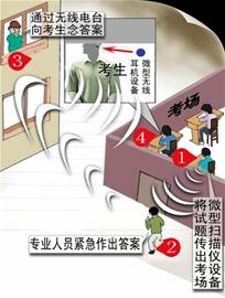 2012年全國碩士研究生招生考試昨天開考,全國共有165.6萬考生參加考試,競爭相當激烈,于是個別想投機取巧的考生鋌而走險選擇作弊應對考試。昨天上午10時左右,在島城一所高校考點附近,無線電監測人員竟接連發現兩處發送考研政治題答案的窩點,將向考生發送答案的人員及“槍手”抓了個現行,目前警方已介入調查。記者調查了解到,這兩處考研作弊窩點作案手法相同,都是向考生提供微型無線耳機設備,由其他人員進入考場用微型掃描儀設備將試題傳出考場,并由專業人員緊急作出答案,隨后由人員通過無線電臺向考生念答案。 ●現場 開考55分鐘傳出“答案” 無線電管委會人員追查發現作弊窩點藏身酒店 昨天上午9時25分左右,政治考試開考55分鐘后,陪女兒參加考研的市民劉林(化名)在考點前馬路上溜達時,一名手持無線電信號探測儀的青島無線電管委會工作人員從他身旁經過,他忽然間聽到,探測儀里傳出一名男子正在用標準普通話念考研政治簡答題答案。“我聽到那名男子正在念關于居民收入分配方面的答案,事后女兒告訴我那是政治試卷第36題的答案。”發現有人正通過無線電波傳輸考研答案,劉林又驚又氣,便跟隨這名工作人員去找尋作弊窩點。 考場外截獲作弊信號 “念答案的那名男子普通話非常好,說的答案我聽得一清二楚。”通過無線電信號探測儀的信號強弱,無線電管委會工作人員在兩名校園保安的陪同下,首先沿教學樓往西南方向搜索,當到達寧夏路與香港東路交界處時信號減弱,他們便往北搜尋,經過反復探測,工作人員將發送無線電信號的窩點鎖定在新竹路6號一家商務酒店附近。 劉林說,工作人員在探測儀指引下通過樓道步行前往酒店4樓,經過詳細探測,確定402房間往外發送無線電波。“估計是我們的腳步聲讓發送答案的人員有所察覺,念答案的人突然換成一名女子。”手持無線電探測儀的工作人員與保安在4樓樓梯口蹲守時,一名40歲左右、中等身材的男子從房間中走出,他身穿灰色外套,神情慌張,一走出房間便跑下樓。 酒店房間搜出作弊器 “這名男子立即往樓下走,結果念答案的女子突然不說話了。”這一反常的情況,讓無線電管委會工作人員更加確認剛才的判斷,由于他們無權敲開房門進去搜查,便趕緊向上級領導匯報并撥110,隨后相關負責人趕到現場,讓酒店服務員打開402房門,劉林看了一下手表,當時是上午9時55分。 “一名20多歲的女青年在房間里,寫字臺上放著兩臺筆記本電腦,經過檢查發現電腦桌面上有考研政治試題的電子版試卷和答案。”起初女青年不承認發送考研試題答案,無線電管委會兩名工作人員最后在被窩里搜出一臺無線電發送設備,設備上還連著天線,工作人員將筆記本電腦及無線電發射設備當場收繳。 劉林告訴記者,工作人員在搜查設備時,跑到樓下的男子曾悄悄溜回房間,一見不妙又趕緊下樓。“110民警也迅速趕來,將在樓下的中年男子及房間內的女青年帶回金門路派出所調查。” 寶馬車內揪出“助考者” 車內搜出一臺無線電發射設備和兩臺筆記本電腦 處理完酒店內的作弊窩點后,手持無線電探測儀的工作人員與校園保安又返回考點。結果剛到達考點,無線電探測儀中又傳出念考研答案的信號。“這次念考研答案的也是個男的,但聲音很小,應該就在附近。”無線電管委會工作人員拿著無線電探測儀立即在考點周圍展開調查,根據信號源的強弱程度,最終將發射源初步確定在與考點只有一路之隔、考點北側一處空曠的鍋爐房大院內。 “大院內停放著一輛寶馬七系黑色轎車,車牌號為魯F開頭,轎車車頭朝北,無線電管委會工作人員和兩名校園保安來到車尾部,發現無線電信號探測儀信號非常強。”劉林說,無線電管委會工作人員隨后敲開車門,坐在駕駛室的男子一見,表情很不自然。 據劉林介紹,當時車內還坐著兩名男青年,車上也有兩臺筆記本電腦。“工作人員在車后座下方也搜出一臺無線電發射設備,駕駛員是煙臺口音,他承認那臺設備是發送考研試題答案的。”劉林說,寶馬車駕駛員當時還想開車溜走,校園保安立即關上大院鐵門,這3名男子才作罷,隨后110民警迅速趕來將3名男子帶回派出所調查。 ●進展 作弊人員移交教育局 記者隨后從市南公安分局求證得知,昨天上午9時55分左右,市公安局110指揮中心接到無線電管委會工作人員電話稱,他們利用無線電信號探測儀監測發現,在新竹路一家商務酒店的402房間內發現無線電信號,屋內極可能有參與考研作弊的人員。接到報警后,市局110指揮中心立刻指派金門路派出所14號警車前往現場,協助無線電管委會工作人員進行搜查,民警在房間內搜索發現兩臺筆記本電腦以及一臺無線電發射器設備,將有作案嫌疑的中年男子及女青年帶回金門路派出所調查,隨后將兩人被移交給市教育局。 昨晚6時30分許,記者聯系到嶗山公安分局相關負責人,據透露,他們在接到公安局110指揮中心的指令后,立即派麥島邊防派出所110民警迅速趕到事發現場。“民警在寶馬車內檢查發現,車內有兩臺筆記本電腦及一臺無線電發射器設備,民警將車上3名男子帶回所里調查,一名男子稱他女朋友參加今年的研究生考試,便買來一套作弊設備,并找來自己表弟及朋友幫忙,準備給女朋友發送考研答案,結果還沒發送出去就被截獲。”這名負責人說,由于未搜查到這3名男子發送考研試卷答案的證