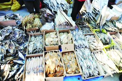 臘月荷包賺得最“鼓” 出海捕撈、自制干海貨、再到集市上銷售,集市上有五六家“自產(chǎn)自銷”的專業(yè)戶。攤主劉正尊介紹說,他出海18年,然后又干了十年的加工活,經(jīng)驗很豐富,“我是港東村的,我們村有加工干海貨的手藝,一般三斤半鮮魚會出一斤干魚。 ”劉正尊說,他只干半年的活,從中秋節(jié)干到春節(jié),因為這個時間制作干海鮮不易招蟲子,中秋節(jié)把魚捕撈上岸,切開后加鹽曬半個月,然后放進冷庫里存放,像“甜曬鲅魚”等有名的干魚就這樣制作出來了。 “鼓眼魚只曬兩三天就行了,其他魚一般得曬一周到半個月。 ”劉正尊自去年中秋節(jié)后至今,已經(jīng)賣了1萬多斤干鲅魚,現(xiàn)在存貨已經(jīng)不多了,“這幾天鲅魚賣得最好,有的單位一下子就要一千多斤,給員工發(fā)年貨。我今天早上5點就來了,做這行一年掙五六萬,光臘月這一個月就能掙兩三萬,加班加點制作出了一萬多斤干貨,生意很紅火,我們的年自然也就過得很紅火啦。 ” |
