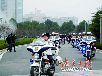 昨日,一張冠名為“溫嶺大小領導騎自行車體察民情 9輛警車鳴笛開道”的照片(如右上圖,網絡圖片)在微博等網絡空間熱傳,照片里幾輛摩托警車開道,后面跟著一些戴帽子騎自行車的人,旁邊還有記者在攝像。