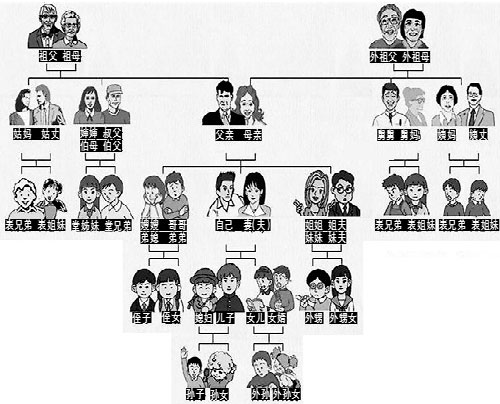 “親戚關系圖”網上受追捧 被贊為“回家年過必備” 網友甚至建議寫進小學教材 近日,新浪微博上的一張“中國人親戚關系圖表”在網上瘋傳,網友轉發、評論數以萬計。甚至有網友認為,應該把中國親戚關系圖寫進小學教材。 在英語里,一個“aunt”代表了對所有女性長輩的稱呼,而“uncle”則代表了所有年長男子的稱呼。而中國人的親戚關系稱謂,則不是一般的復雜,在長輩女性中就有伯母、嬸母、姑母、姨母、舅母等,長輩男性則有伯父、叔父、姑父、姨丈、舅父等,再到下一輩則更為復雜。 “‘中國人親戚關系圖表’快失傳的東西,收藏一下吧,省得叫錯了!”不久前,不少熱門微博都發布了這張圖,轉發率都很高。這張圖非常直觀和清楚,一下就能看明白。 記者從微博上發現,這張圖讓不少網友產生了共鳴,也可以說解救了不少網友。“木木川”就發自肺腑地大叫:“我太需要啦!家里親戚亂喊亂叫好丟臉!”網友“趙慶偉”也深有同感:“小時候傻不拉幾的都分不清楚親戚怎么叫。”“蕾蕾-lillian”說:“確實不會,每次都問一下再叫。” “馬上過年了,去老家之前趕緊看一遍。”網友“vickyamy88”的感慨得到大家贊同。不少網友表示,這是回家過年的必備知識。 網友“汪汪嚎HOWIE鯄櫞”說:“很多人以為父親的兄弟姐妹的孩子都叫‘表X’,其實姑媽的孩子應該叫‘姑表兄/弟/姐/妹’。” “徐lily”也弄明白了一點:“最早媳就是子之婦,后來北方人管妻子也叫媳婦。”“悠然紙鶴”也表示:“太復雜了!以為父系都是堂呢,敢情還分男女哪!”“毒藥_C”童鞋直接提出建議——寫進小學教材。 民俗專家則表示,這張圖表省去了很多敘述的語言,一目了然,非常實用,很多網友表示可以用來教育下一代,甚至可以直接傳給下一代。 南昌大學人文學院教授黃勇平認為,中國親戚關系圖很不錯,他說,現在年輕人的親戚越來越少,有時要跟孩子講明白這些關系還真是不容易。而中國親戚關系圖則一目了然,非常清晰,非常實用。 |