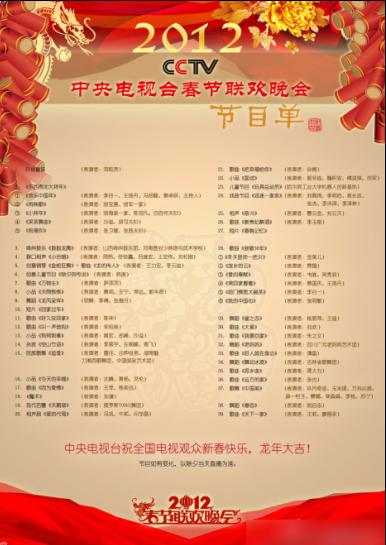 ????央視春晚每年都會在正式直播前進行全程備錄,以確保萬無一失。昨天的備錄中,王菲和陳奕迅首次亮相,攜手獻唱了廣受歡迎的歌曲《因為愛情》。同時,春晚劇組于昨天下午通過媒體發布了龍年春晚節目單,節目單上既有龍年春晚的標識,也有所有亮相春晚表演的節目和演員,觀眾可通過網絡進行下載。