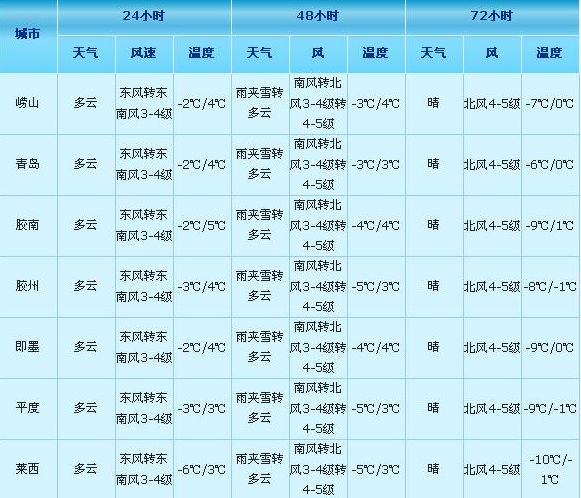 青島市氣象局1月30日06時發布未來3天的天氣預報