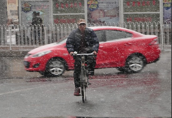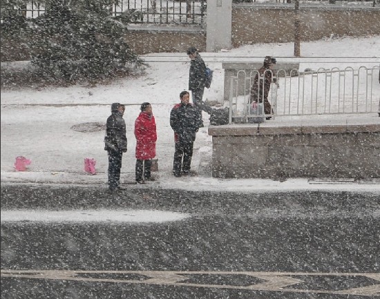 青島市區迎來龍年首雪(尚品 攝)