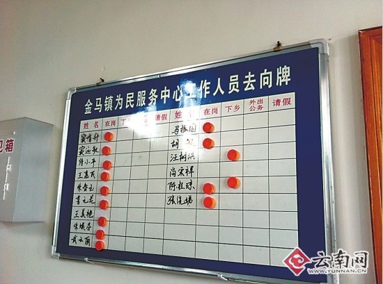 金馬鎮鎮政府工作人員去向牌上都是“在崗” 調查 有鄉鎮政府放假到2月16日 瀘西縣全縣轄7鎮(中樞、逸圃、午街鋪、金馬、三河、舊城和白水鎮),3鄉(向陽、三塘、永寧鄉),下設81個村民委員會。 這些基層鄉鎮也會存在“超時放假”的情況嗎? 昨日中午,記者首先來到瀘西縣舊城鎮鎮政府,偌大的辦公區非常冷清,辦公室基本都是大門緊鎖,只有二樓的鎮黨政綜合辦公室門開著,里面一男子正在值班。記者以要辦事為名上前詢問,男子客氣地說:“還沒收假呢,要到7號才上班,要辦事的話,最好等過了小年再來。” 金馬鎮鎮政府的情況也一樣,政府辦公大樓里空空蕩蕩的。記者再次以辦事為名向政府辦公室的一值班女子詢問,女子說:“我們還沒有收假呢,要到13號才上班。” 隨后,記者逐一向其他鄉鎮進行了解,得到的答復都是:過了正月十五(2月6日)才上班。不過,每個鄉鎮收假時間有所不同。其中:午街鋪鎮2月16日收假;白水鎮2月9日收假;向陽鄉2月7日收假;三塘鄉2月13日收假。 記者發現,瀘西縣政府及其他鄉鎮辦公樓里的工作人員去向牌上,都標示著“在崗”,不過,辦公室大門卻都緊閉著。 回應 平時沒假期長假一起補 在舊城鎮黨政綜合辦和金馬鎮政府辦公室,對于“超時放假”,值班人員的解釋都是:基層單位由于平時工作很忙,沒有什么假期,所以才在春節的時候放這么長的假期。而且,現在剛過完春節,縣政府機關等部門,也都是基本到正月十五以后才正常上班,因此希望大家理解。 瀘西縣政府的一名值班人員也給出了相同的解釋:“平時工作忙,沒休息日,才統一放長假。”該值班人員還告訴記者,放假的事情,是縣里統一安排的。 |