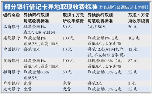 異地同行取款:部分銀行免手續(xù)費