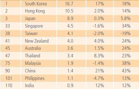 亞太國家或地區(qū)在2011年度的網(wǎng)速與增幅排名 ????據(jù)Record Japan新聞網(wǎng)2月1日消息,根據(jù)全球最大的CDN服務(wù)商美國Akamai公司1月31日公布的最新數(shù)據(jù)顯示,2011年第四季度世界平均網(wǎng)速同比提升了39%,達(dá)2.7Mbps,平均連接速度最快的國家或地區(qū)是韓國,日本排在第三位。而中國大陸僅排在第90名。 ????數(shù)據(jù)顯示,2011年第四季度韓國平均網(wǎng)速同比增加18%,達(dá)16.7 Mbps,中國香港以10.5 Mbps(同增14%)位居第二;日本則以8.9 Mbps(同增5.8%)排在第三位;美國同比增幅達(dá)到了23%,以6.1 Mbps位列第13名。中國大陸以1.4Mbps的網(wǎng)速排在第90名,不過其網(wǎng)速同比增幅達(dá)到了43%。 ????此外,2011年度全球網(wǎng)速峰值最高的國家或地區(qū)仍為韓國,達(dá)46.8 Mbps,其次分別是中國香港46.0 Mbps、羅馬尼亞34.5 Mbps以及日本32.9 Mbps。而在“網(wǎng)速低于256Kbps的慢速互聯(lián)網(wǎng)用戶比例”的比較中,印度以29%高居亞太地區(qū)第一名。中國大陸與新西蘭并列第二,但這兩個(gè)地區(qū)的慢速互聯(lián)網(wǎng)用戶比例僅為3.3%。 |